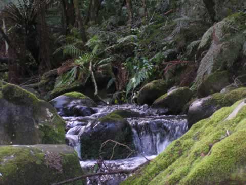Rainforest trees and clear water